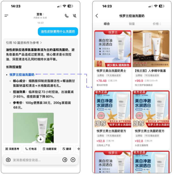 基于豆包的推荐逻辑,当用户提出消费需求时,系统会优先呈现具体商品而非泛泛建议。这意味着,若你的商品未能进入推荐列表,就等于将用户直接拱手让给竞争对手。